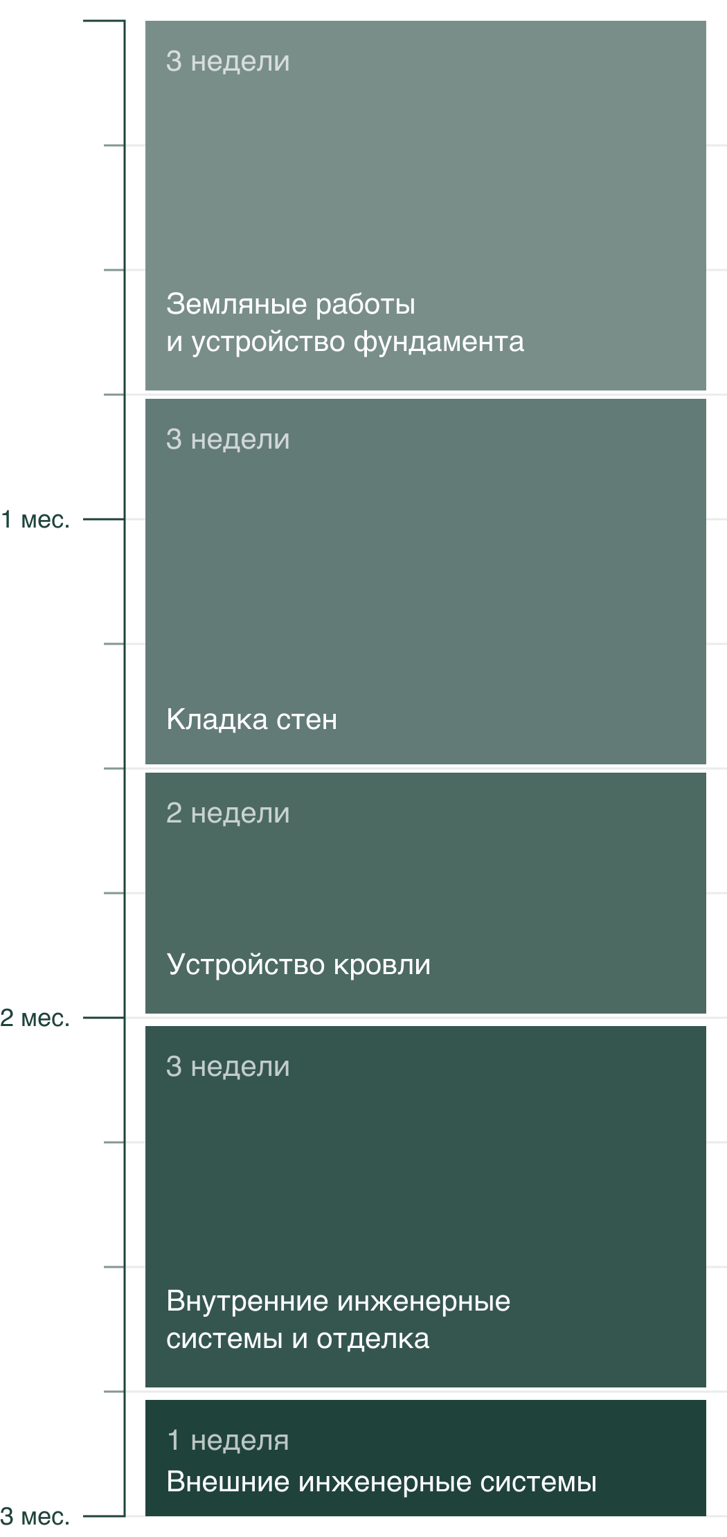 - Внутренние несущие стены: забутовочный киприч — 250 мм